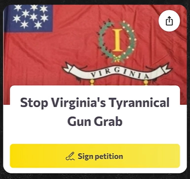 The petition, appearing at Change.org, specifically targets House Bill 217, along with a "coordinated bundle of anti-Second Amendment legislation." As reported earlier by TGM, Democrats now running things are essentially making up for lost time over the past four years when Republican former-Gov. Glenn Youngkin vetoed 'gun control' legislation.