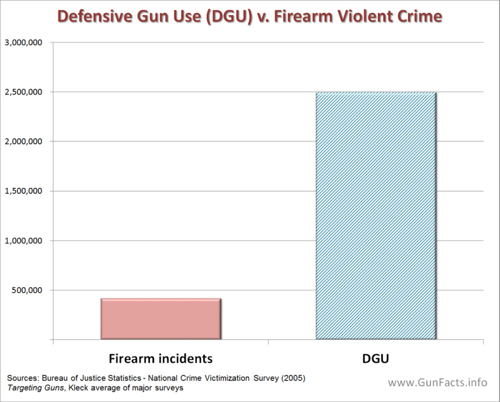 Fact: The rate of defensive gun use (DGU) is six times that of criminal gun use. [5]
