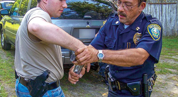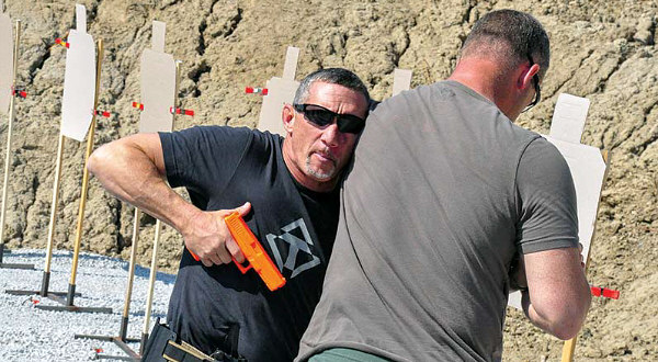 When you and the Bad Guy are within arm's reach of each other, I don't know any currently living Good Guys or Gals who can react, clear their cover garment, draw from concealment, and shoot the Bad Guy in a guaranteed one-half of one second. I do know that in our advanced classes, we show that when they are facing each other squarely, almost every student can get their hand on the opponent's gun or gun hand in about half a second or less. The trick is you have to know how to proceed from there into deflecting the muzzle (or the point of the knife) and flowing into a disarm. Disarming requires technique and practice — practice that's less fun than shooting — but it's sometimes the best answer. That's why Craig Douglas teaches disarming as part of the repertoire of life-saving skills he shares with his students.